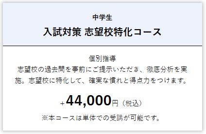 スタンダードコースと何が違うかというと、志望校に応じたオーダーメイド授業をしてくれるということです。